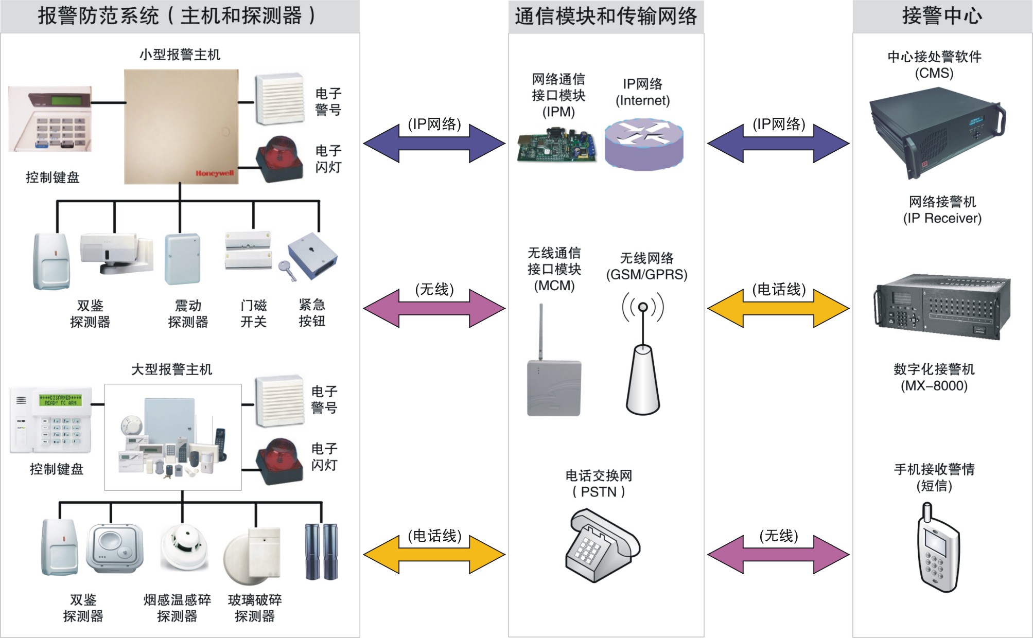 网络化报警联网解决方案(IP Alarm Solution)和无线方式报警联网解决方案(Wireless Alarm Solution),针对银行中小型报警主机推出的网络化报警联网产品,通过网络或无线方式直接向上级主管机构发送警情信息,同时以短信、GPRS方式报告给终端用户(接警中心或单个用户),远程读取报警主机状态,接收从接警中心下发的控制命令,实现对主机的远程布防、撤防等操作。 无论是网络化报警联网或无线方式报警联网方式,均保留原有的电话线报警模式(PSTN),保障报警信息即时送达接警中心(始终向当地110接警中心直接报警),并提供对原有电话线报警的有效补充,实现银行主管部门的远程直接监管功能。