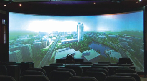 该系统的主要组成部分有:屏幕、高端工程投影机、融合器、中控系统、矩阵、电脑等设备组成。