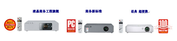 松下商务投影机无线、有线两条产品线同时出击商务市场。其中4款无线产品形成2000到3500流明完整的产品线:PT-BX100NT、BX20NT、BW10NT、UX71NT,业内首款具有无线和宽屏这两大杀手锏的PT-BW10NT开辟投影机高品质、高应用性的新纪元,PT-BX100NT在08年46款投影机横向评测中荣获“BEST BUY”大奖和专业媒体编辑奖,PT-BX20NT作为年度最佳升级产品再次获得编辑推荐大奖、PT-UX71/71NT作为全球松下投影机系列销量冠军并获得年度个人电脑IT百佳产品。时尚便携、高亮防尘的有线系列PT-BX20、BX10、UX71令人耳目一新。