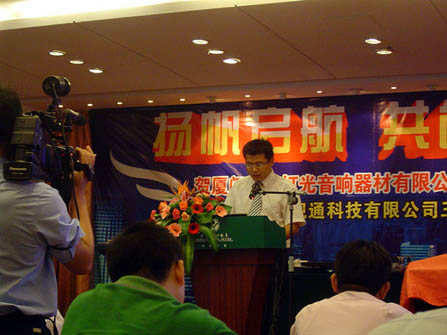 2007 年9 月24 日 星期一 ,一场主题为“扬帆启航,共创盛世”的厦门市华泰视通科技有限公司三周年庆及厦门先歌灯光音响公司成立大会在厦门宏都大饭店三楼多功能宴会厅隆重召开。先歌总部领导、夏普公司领导、各区域核心代理商、核心行业用户、音视频行业专家、采购办、招标办以及众多媒体朋友出席了此次会议。