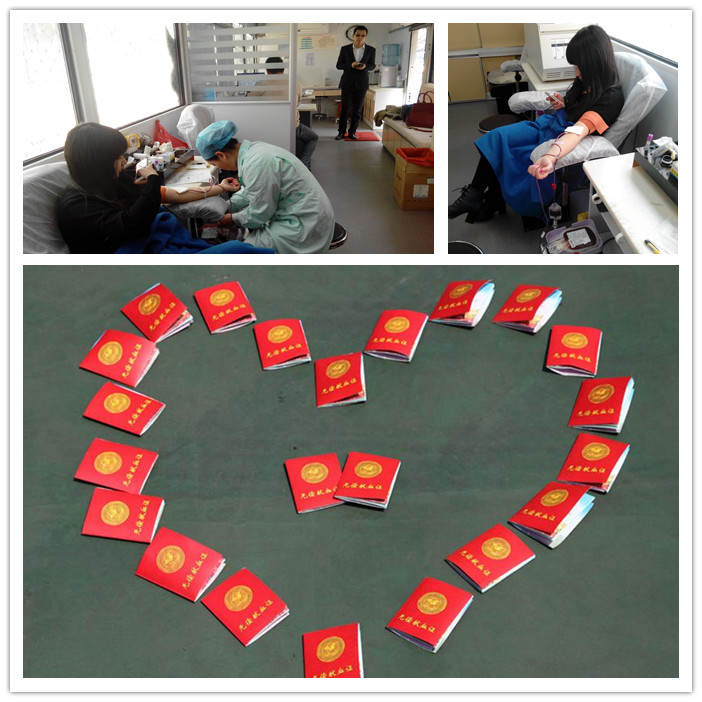 1月21日十点半,大家准时到达思北献血站点,并在血站工作人员的指导下,认真填写献血登记表、测量血压、抽血化验,经血液检验合格后无偿献血……整个过程始终都在一种轻松、愉快的氛围中有序进行,大家有说有笑,一边为自己能对社会做一点力所能及的事感到满足和自豪,同时也用笑语嫣然的心情冲淡由于采血过程中产生的紧张心理。当拿到属于自己的鲜红小本时,他们脸上都露出了欣慰的笑容,一时间,献血现场处处洋溢着奉献爱心后的喜悦与自豪。