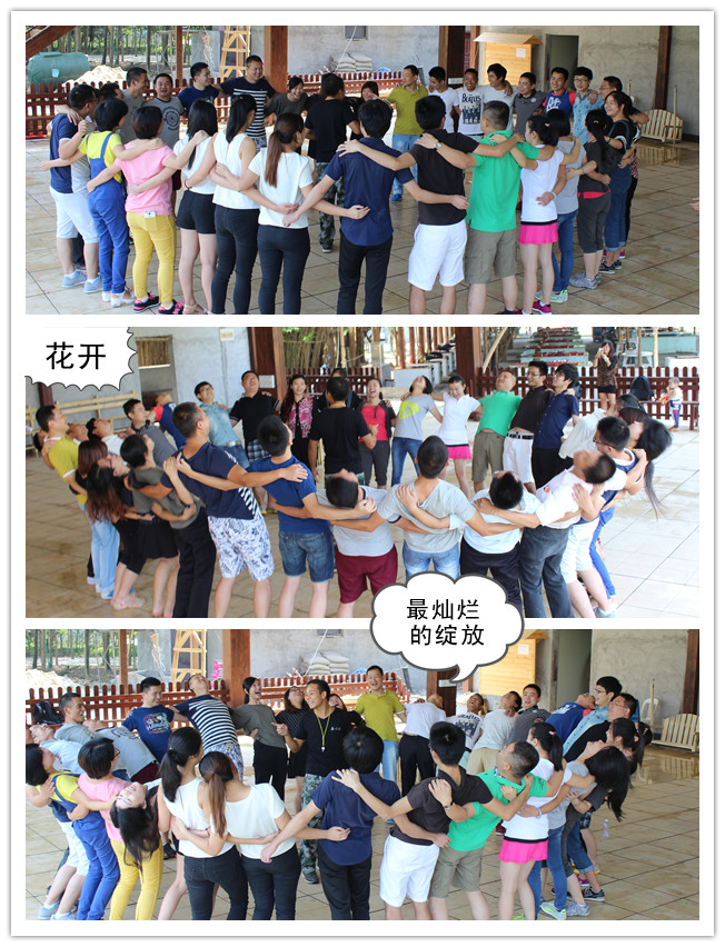 在教练“高富帅”的带领下,首先开始了活动活动筋骨的“花开花落”游戏,大家相互手搭肩围成一圈又是合拢又是下腰的,几回合下来,华泰之花由起初的含苞待放到灿烂绽放得不要不要的。