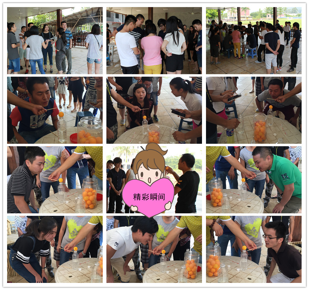 接下来是看似轻松实则不然的“吹乒乓球”的游戏,要的是能说会道顺带吹的本事,考验战略配合和肺活量的时刻到了!看看那坚强的小乒乓在矿泉水瓶口上“屹立不倒”,着实捉急……