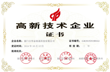 日前,厦门市华泰视通科技有限公司凭借专业的研发队伍、雄厚的技术实力、持续的创新能力、科学的企业管理,顺利通过高新技术企业认定,荣获由厦门市科学技术局、厦门市财政局、厦门市国家税务局、厦门市地方税务局联合颁发的《高新技术企业证书》。