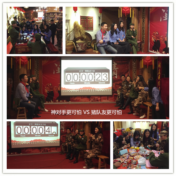 首先来到的是华泰视通第一届非官方不靠谱但希望很有趣的趣味辩论赛。说辩就辩方能彰显我们与众不同的风格,在对接通关密语后正反方阵营迅速集结起来,并在众多趣味辩题中一眼相中了“神对手更可怕或者猪队友更可怕”的辩题,短暂的排兵布局之后唇枪舌战拉开揭幕,战况是愈演愈烈,思维火花的碰撞超越了辩论规则的局限,FUN局嘛,大家开心就好咯~~辩手们表现都棒棒哒,最佳辩手的表现更是出众。