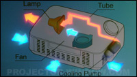 | 新冷却系统,身轻如燕 NP40+/50+/60+ NP新品应用的“新冷却系统”成为发布会上的最突出看点。 通过使用冷却泵替代了原有的风扇散热,增加灯泡周围的空气进气量, 加快空气流通速度,达到快速散热,这是既ECO模式后又一延长灯泡寿命的创新技术。